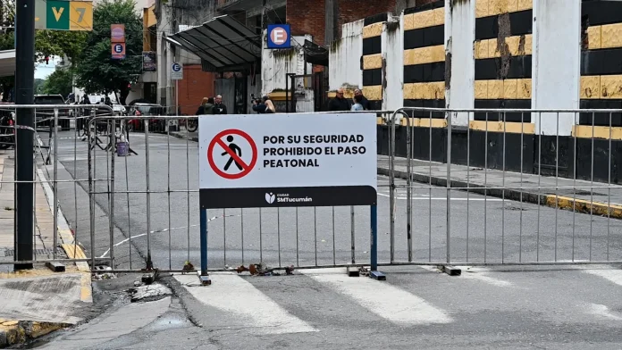 La Municipalidad de San Miguel de Tucumán continúa con el operativo preventivo en el edificio ubicado en Mendoza 281, entre Virgen de la Merced y Monteagudo, que presenta riesgo de derrumbe debido a grietas y daños estructurales. La intervención municipal se inició tras denuncias por desprendimientos de mampostería y tiene como objetivo resguardar la seguridad de peatones y conductores.