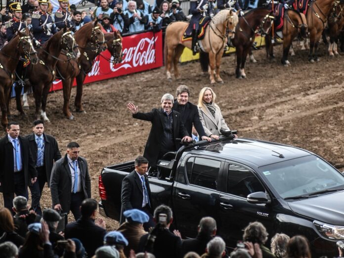 En el palco oficial también están presentes el presidente de la Sociedad Rural Argentina (SRA), Nicolás Pino, y varios ministros del gabinete como Guillermo Francos (Interior), Patricia Bullrich (Seguridad) y Luis Petri (Defensa). Quien no asistió fue la vicepresidenta Victoria Villarruel.