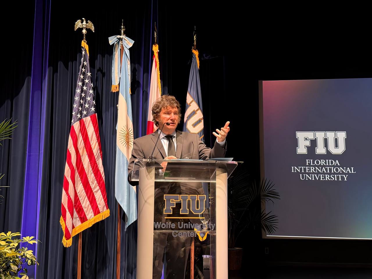 El Presidente Javier Milei visitó el Instituto de Políticas Públicas Jack D. Gordon (FIU), en la ciudad de Miami, Estados Unidos, donde mantuvo un encuentro con las autoridades de entidad académica, recibió un reconocimiento especial y brindó una exposición.