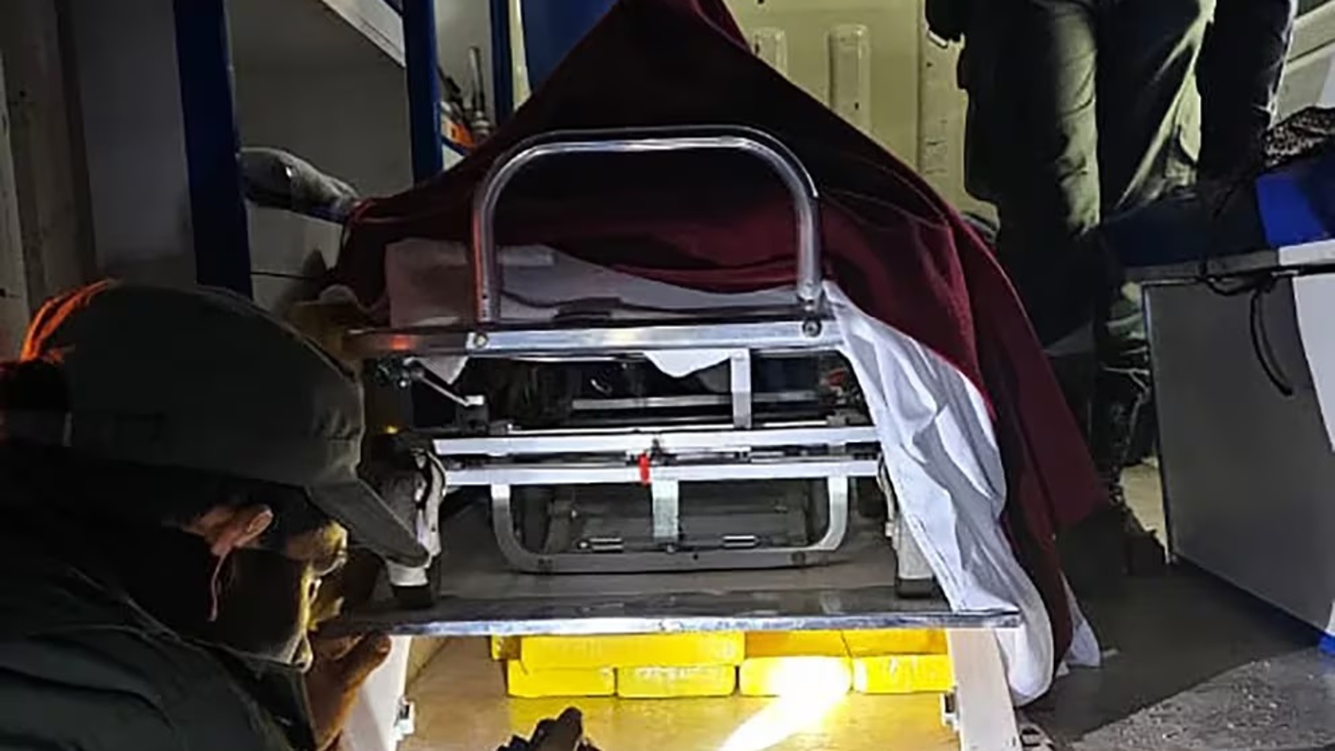 Ocurrió en Santiago del Estero. El vehículo se dirigía desde Salta hacia la Ciudad de Buenos Aires por el supuesto traslado de una mujer en grave estado de salud. En un doble fondo debajo de la camilla hallaron la droga embalada en ladrillos amarillos y con la marca del delfín- Fue durante un control que los gendarmes detuvieron la marcha de una ambulancia perteneciente a una empresa privada que circulaba por la Ruta Nacional N° 16, proveniente de Orán, en la provincia de Salta, y con destino final la Ciudad de Buenos Aires. En el vehículo viajaban dos trabajadores y una mujer que aparentaba estar enferma. Los uniformados notaron incongruencias en el relato de los tres ocupantes, quienes aseguraron que estaban por realizar un viaje extenso con un paciente de alta complejidad. En ese momento detectaron que la vía del suero no estaba inyectada a la mujer. Ante ese hecho llamativo y varias respuestas evasivas, se realizó una requisa más minuciosa.