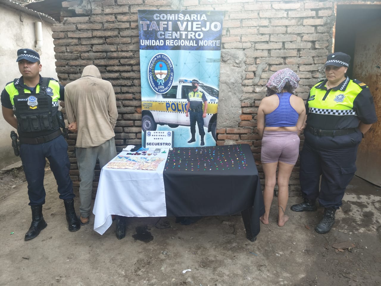 En una serie de allanamientos concretados este jueves en busca de esclarecer un robo, los efectivos de la Comisaría Tafí Viejo Centro hallaron estupefacientes y aprehendieron a una pareja por narcomenudeo. Además, recuperaron el celular de la víctima.