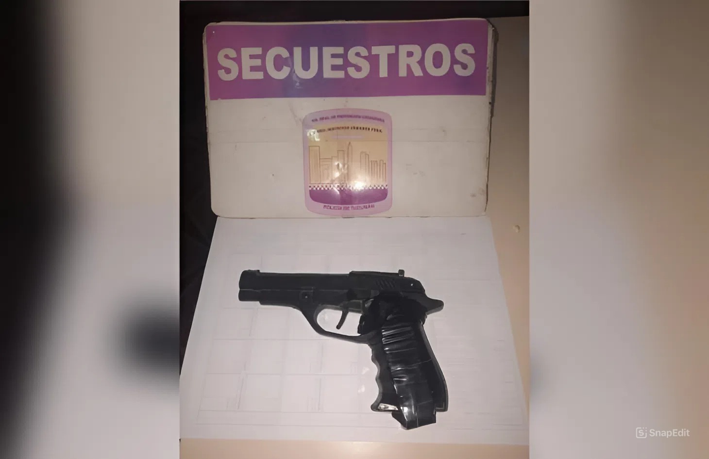 Tras una persecución, los agentes lograron darle alcance y, durante una requisa, le hallaron una réplica de pistola de 9 mm de color negra, con modificaciones en su empuñadura.