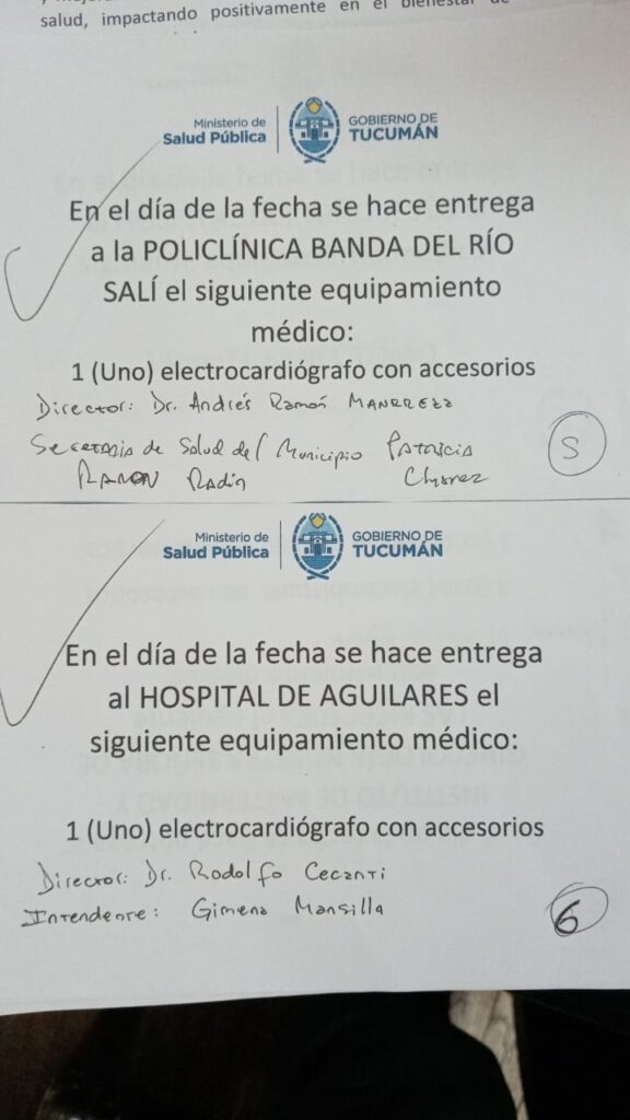 La entrega de equipamiento e insumos médicos demandó una inversión de $1300 millones con recursos provinciales. Entre los centros beneficiados están: los hospitales Centro de Salud, de Niños y el Instituto Maternidad de la capital; los hospitales de Simoca, Monteros y Tafí del Valle; el Área Operativa Famaillá; las policlínica San Rafael, Lomas de Tafí, Santa Rita y los caps de Anca Juli, Río Chico, La Invernada, El Cajón, San Pedro de Colalao, El Mollar, Ñorco, Anfama, San José de Chasquivil, Choromoro, Amberes, Estación Araoz, Medina y Villa Quinteros.
