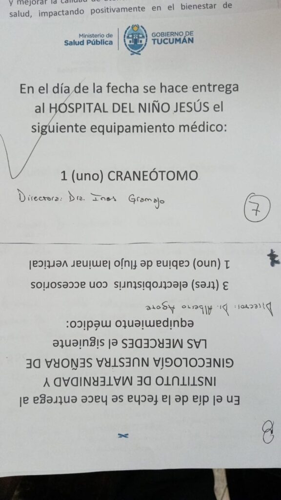 Por otro lado, el Hospital de Monteros recibió además dos set de laparoscopía, instrumental que permite a los cirujanos y a los ginecólogos poder acceder al abdomen sin la necesidad de hacer grandes incisiones en el abdomen.
