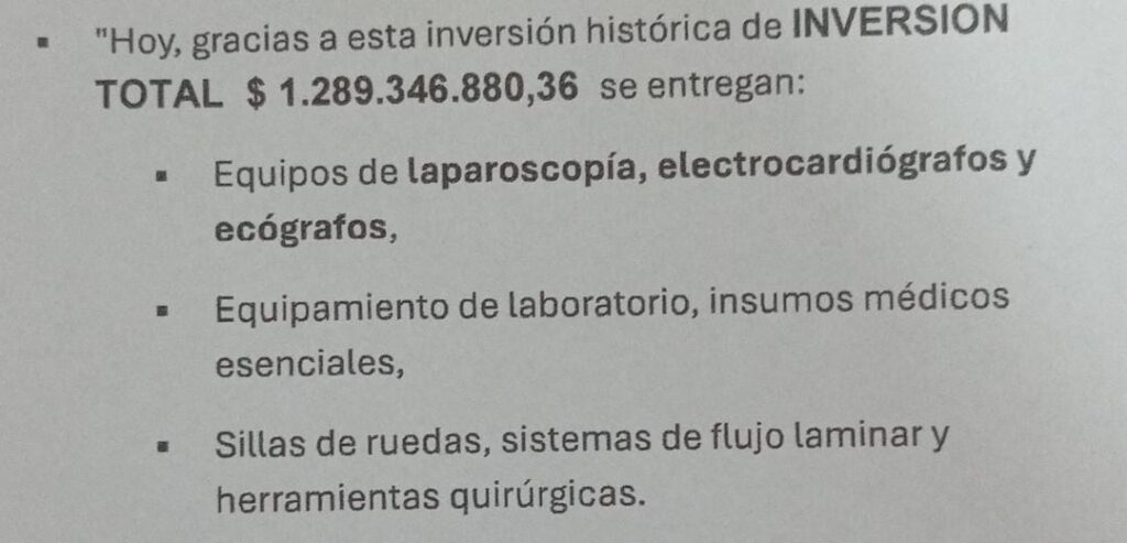 «Hicimos una entrega importante por un valor de casi $1.300 millones del presupuesto provincial, distribuyendo diferentes tipos de equipamiento que tienen que ver con mejorar y consolidar el servicio de salud, tanto en nuestros hospitales cabeceras como así también en los CAPS y en los hospitales del interior de la provincia», comenzó diciendo el Primer Mandatario.