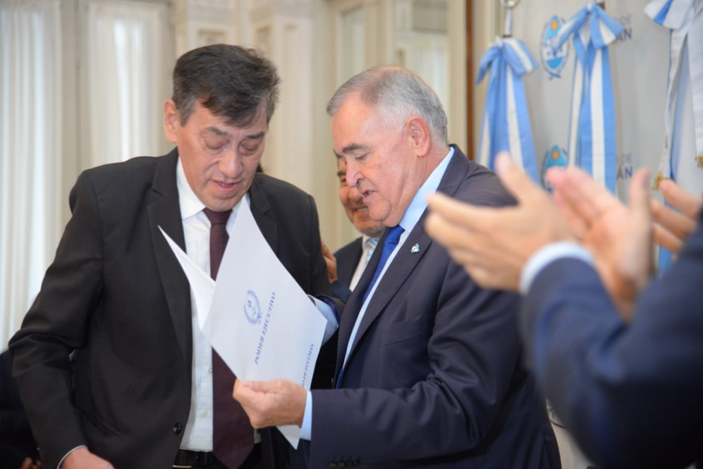 Junto al mandatario tucumano, acompañaron el vicegobernador, Miguel Acevedo; el presidente subrogante de la Legislatura, Sergio Mansilla; el vicepresidente segundo de la Legislatura, Alfredo Toscano; el interventor del Instituto Provincial de Vivienda y Desarrollo Urbano (Ipvdu), Hugo Cabral; los ministros Darío Monteros (Interior), Daniel Abad (Economía y Producción), Marcelo Nazur (Obras y Servicios Públicos); Regino Amado (Gobierno y Justicia); Luis Medina Ruiz (Salud Pública); Susana Montado (Educación); la fiscal de Estado, Gilda Pedicone de Valls; el secretario general de la Gobernación, Federico Nazur y el secretario de Producción, Eduardo Castro.