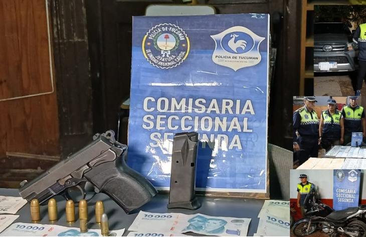 “Con anuencia de la Fiscalía de Robos y Hurtos III, en la fecha se llevaron a cabo tres allanamientos en diferentes viviendas; en una de ellas ubicada en calle Moreno, se logró el secuestro de una camioneta Toyota Hilux, una motocicleta Honda Falcon color negro, 846.000 pesos en efectivo y 800 dólares también se secuestró una pistola calibre 45mm con 5 cartuchos en su interior”, agregó Rodríguez quien mencionó también que los elementos secuestrados ya se encuentran en poder de la Justicia para el avance de la investigación hasta su total esclarecimiento.