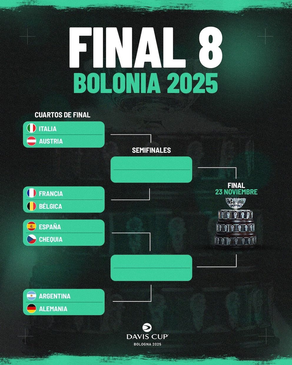 Por el lado argentino, el equipo liderado por Javier Frana contará con Francisco Cerúndolo como primera raqueta. Todo indica que el cruce principal será entre Cerúndolo y Zverev, un duelo que ya tiene historia reciente. El argentino lidera el historial por 3-1, con victorias en polvo de ladrillo, mientras que el alemán se impuso en el último enfrentamiento en cancha dura, superficie similar a la que se utilizará en Bolonia.