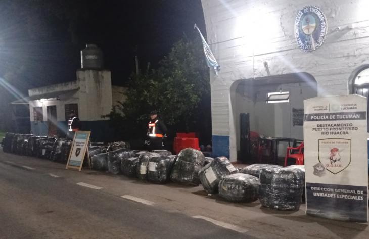 El procedimiento fue llevado a cabo en el Destacamento Fronterizo Río Huacra, ubicado en el kilómetro 622 de la Ruta Nacional 38. Allí, fue detenido un camión de transporte de cargas que se dirigía hacia la provincia de Catamarca, y fue inspeccionado el contenido del acoplado.