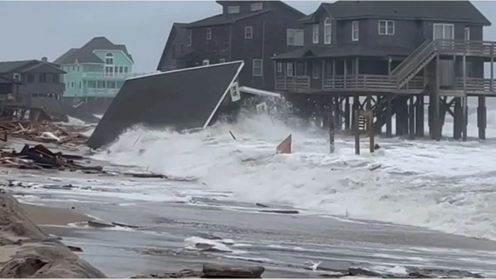 El fenómeno natural generó olas destructivas que arrasaron con las dunas de la playa, causando que varias casas cayeran al mar. Cinco viviendas se desplomaron la tarde del 30 de septiembre entre las 14 y 14:45 horas locales, mientras que otra se derrumbó esa misma noche con olas de hasta 3,6 metros de altura, informó el Servicio de Parques.