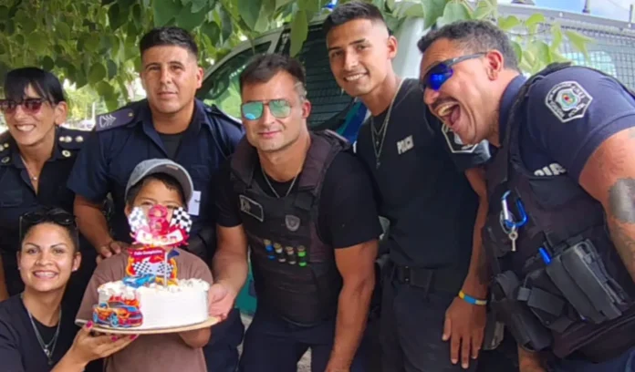 Conmovido por la situación, el policía no solo lo escuchó, sino que lo acompañó hasta su casa y, antes de irse, le hizo la promesa de que iba a volver con una torta para celebrar.