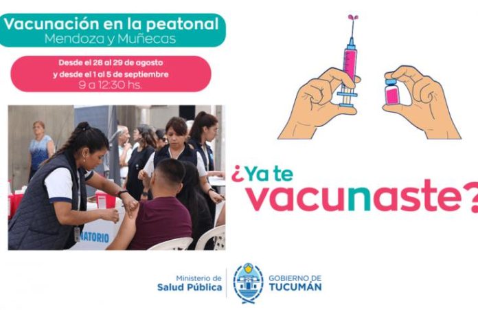La iniciativa se desarrollará en la peatonal de calles Mendoza y Muñecas, los días 28 y 29 de agosto y del 1 al 5 de septiembre, en el horario de 9 a 12:30 horas. Durante esas jornadas, los equipos de salud estarán disponibles para aplicar las dosis correspondientes y completar esquemas de vacunación.