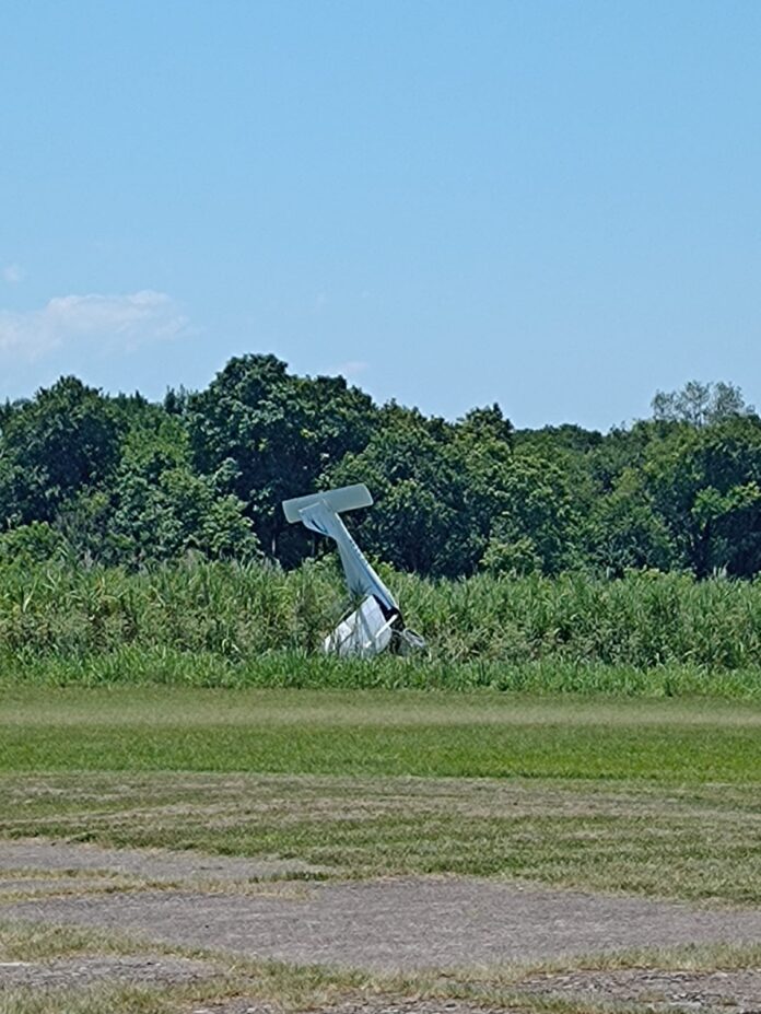 Un aeronave monomotor de alta, que realizaba un vuelo de instrucción, en el mediodía de hoy, por causas que se tratan de establecer, en la maniobra de descenso, tocó la pista, pero terminó en el pasto con la proa del avión bloqueada lo que hizo que el empenaje se elevará y quedarán los tripulantes atrapados en la cabina, a pesar de esto tanto Leonardo Almirón (piloto), cómo su acompañante, Matías Pereyra resultaron ilesos. Solo hubo daños materiales.