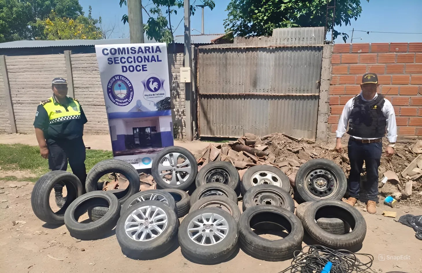 En allanamientos concretados este miércoles por el robo a una escuela, los efectivos de la Comisaría Doce secuestraron neumáticos y aves silvestres en cautiverio en las viviendas de los sospechosos.