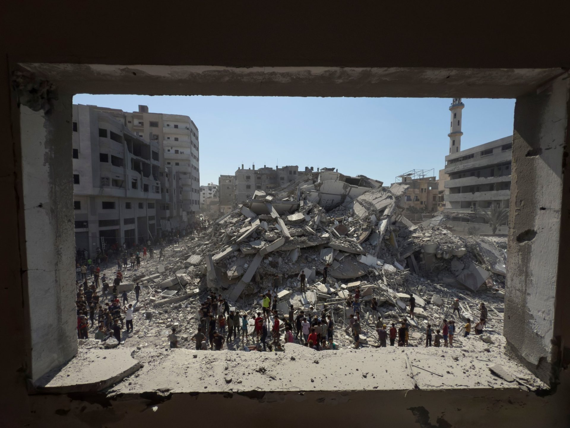 El vocero de la Defensa Civil gazatí, Mahmud Basal, dijo que ataques israelíes sobre un complejo residencial cercano a la plaza Al Shawa dejaron “muertos, heridos y desaparecidos” en la zona.